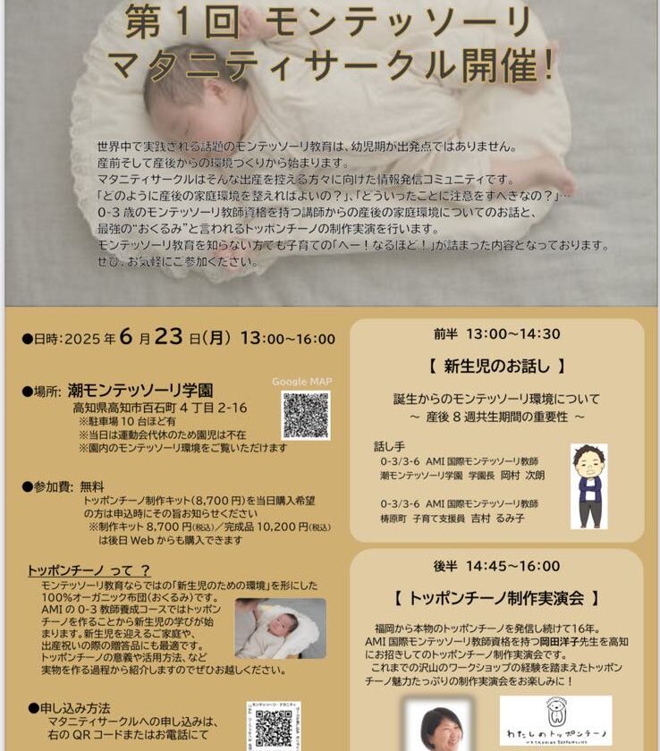 AMI 国際モンテッソーリ教師資格を持つ岡田洋子先生を高知にお招きしてのトッポンチーノ制作実演会です。